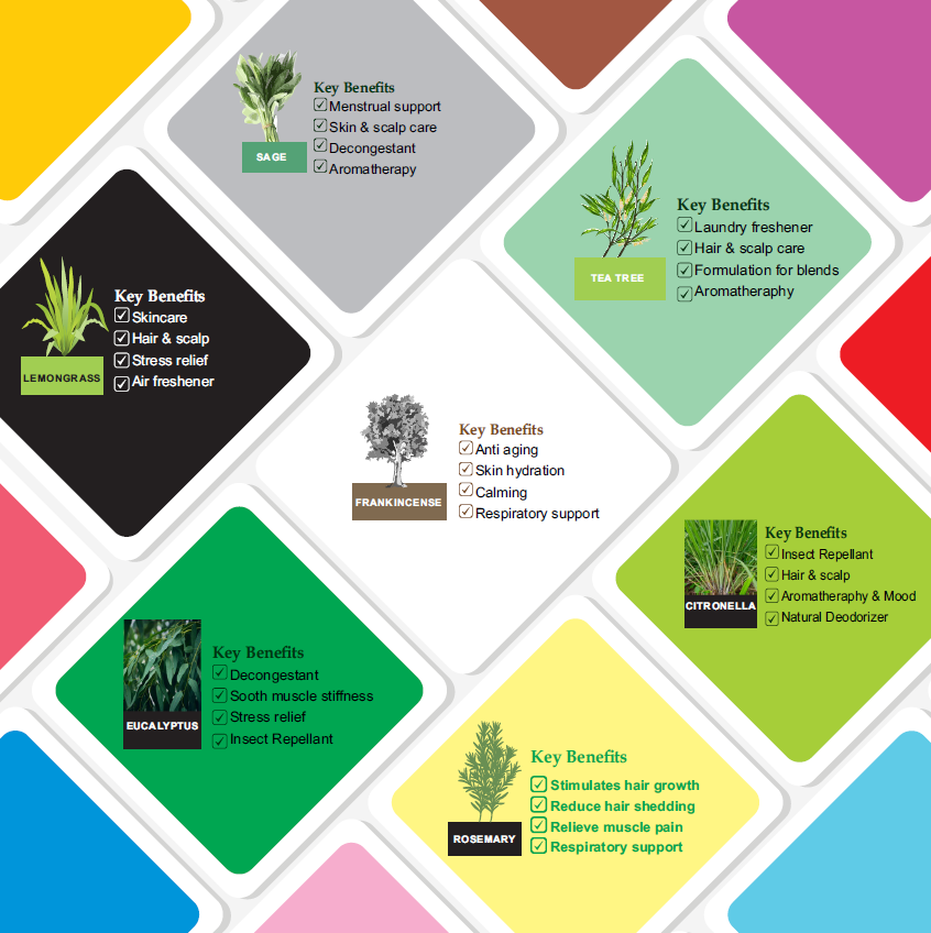 - Tea Tree: Your go-to fighter! It’s great for acne, cuts, dandruff, and battling bacteria and fungus.